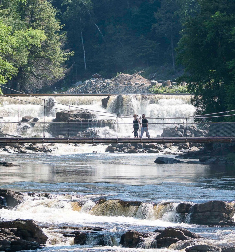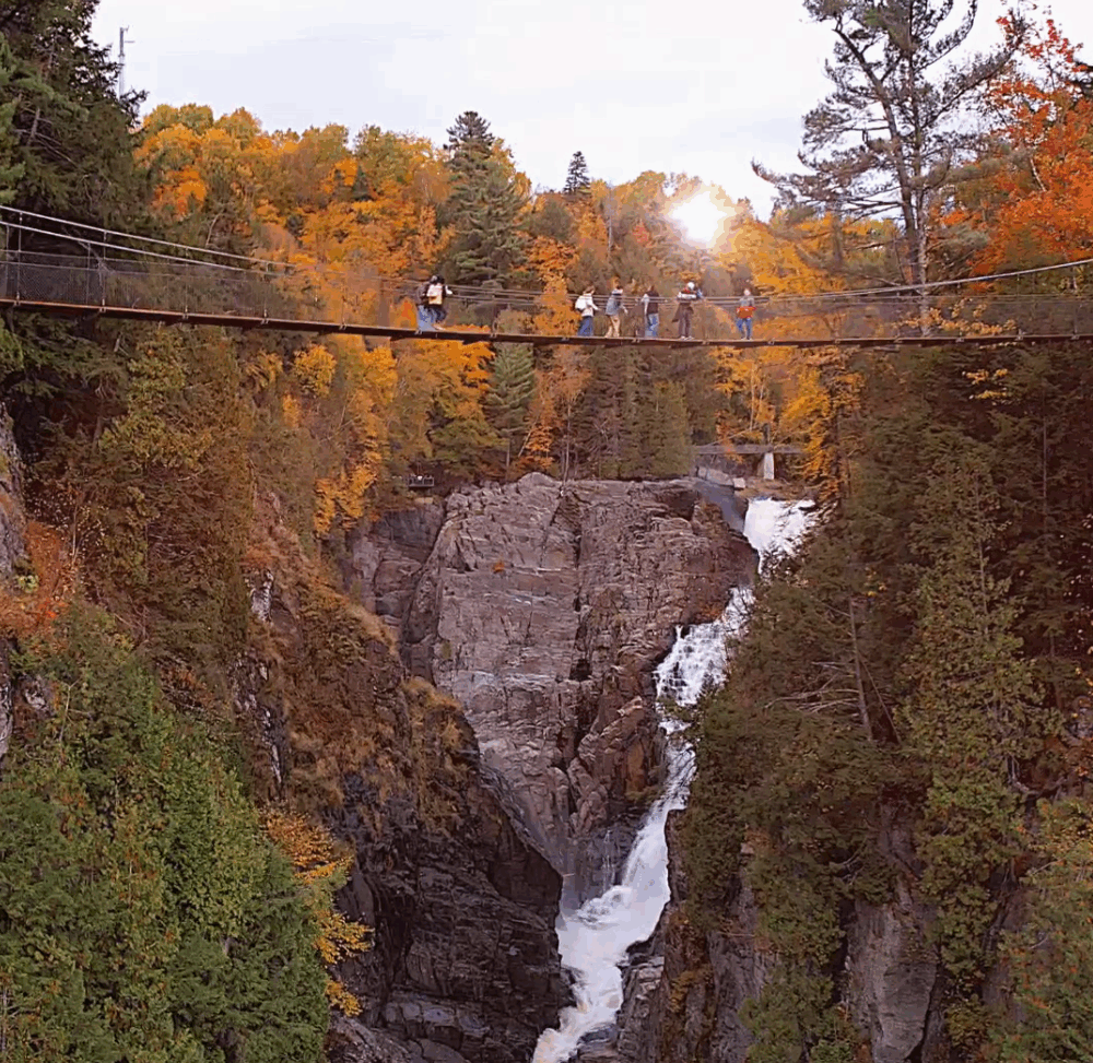 En famille, seul ou entre amis, vivez l’expérience d’une randonnée pédestre au cœur d’un véritable canyon creusé dans le roc du Bouclier canadien depuis plus d’un milliard d’années. Parcourez 3 km de sentiers balisés, traversez une chute de 74 mètres, plus haute que celle du Niagara, et empruntez trois ponts suspendus, dont l’un des plus hauts et spectaculaires du Québec, perché à 60 mètres au-dessus du canyon. Admirez les panoramas saisissants de la chute et des rochers depuis huit belvédères aménagés dans les parois rocheuses du canyon.